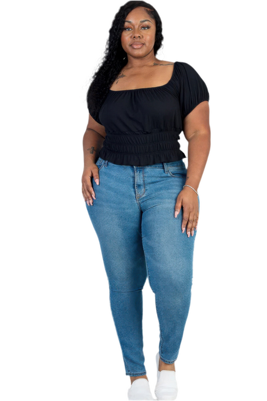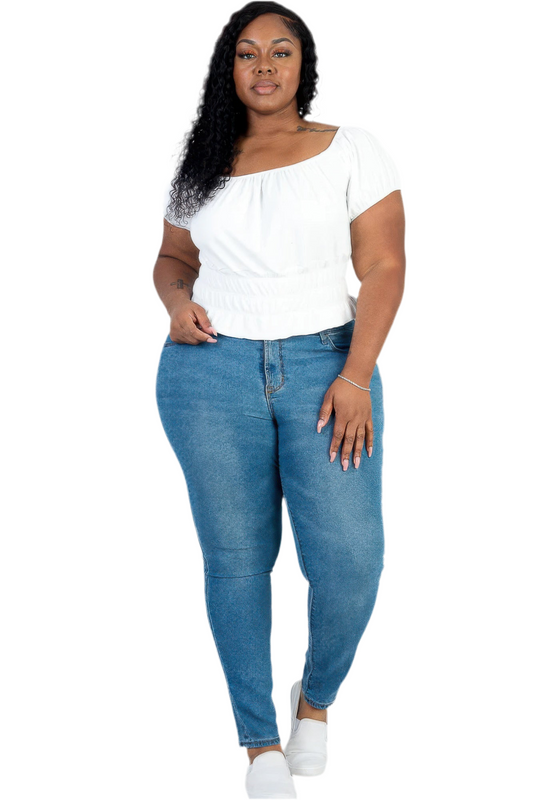 Plus Sized Off The Shoulder Lace Scallop Edge Top
