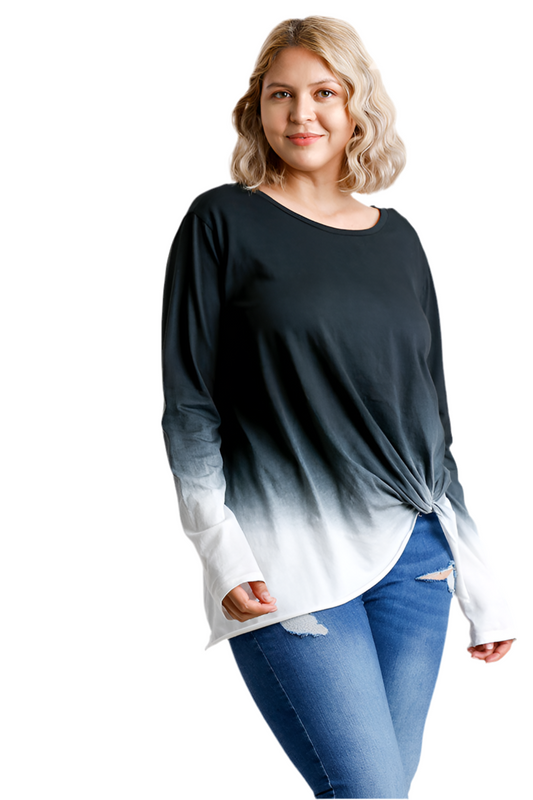 Ombre Chiffon Long Sleeve Slit Front Maxi Dress
