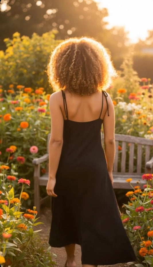 Solid Tie Waist Ruffle Midi Dress